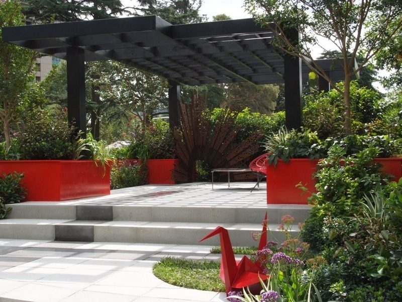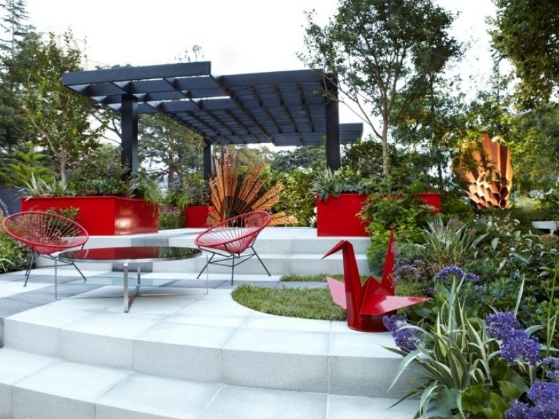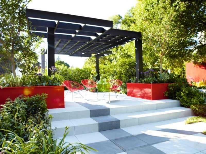 Surge is an understated yet stunning garden designed for the true gardener. A clean, crisp modern entertaining area forms the structure of the garden which is surrounded by split levels, clean straight paving lines, and soft edges with plants spilling over informal rocks.