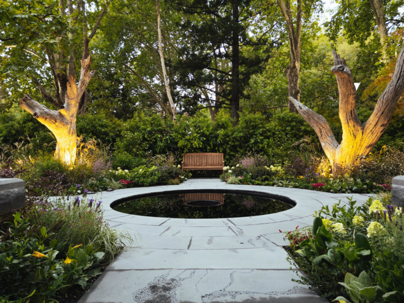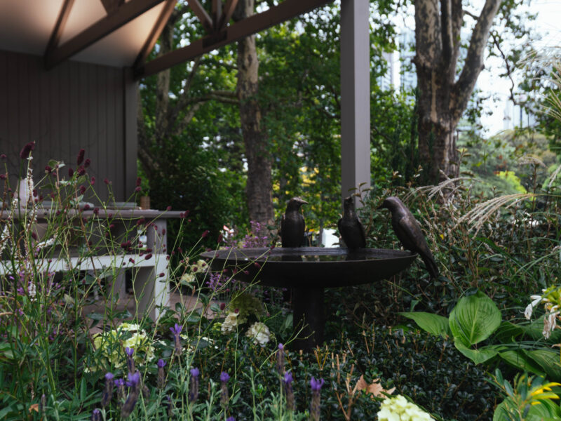 At the heart of the garden, a central water feature continuously fills and overflows symbolising the constant exchange of knowledge and ideas within the industry. A vortex at its centre represents the void left by the loss of visionary figures, offering a space for reflection and pause.