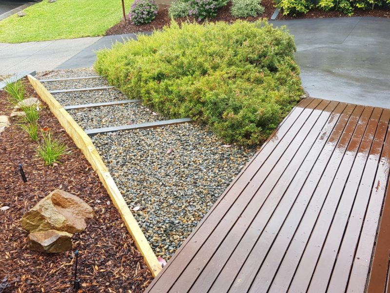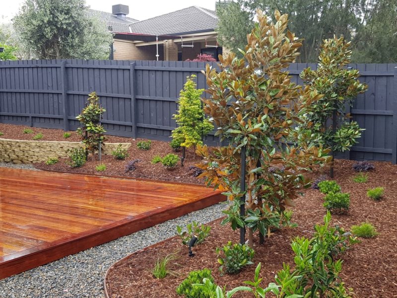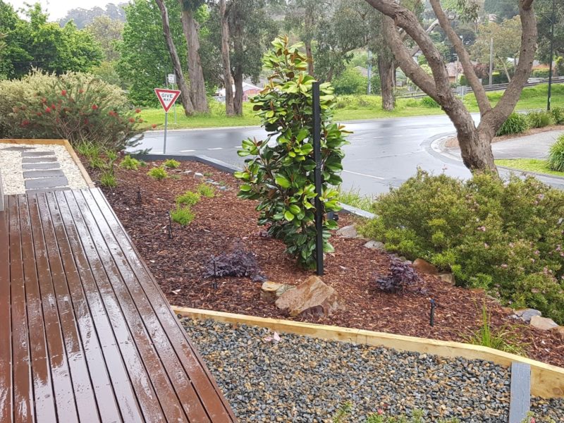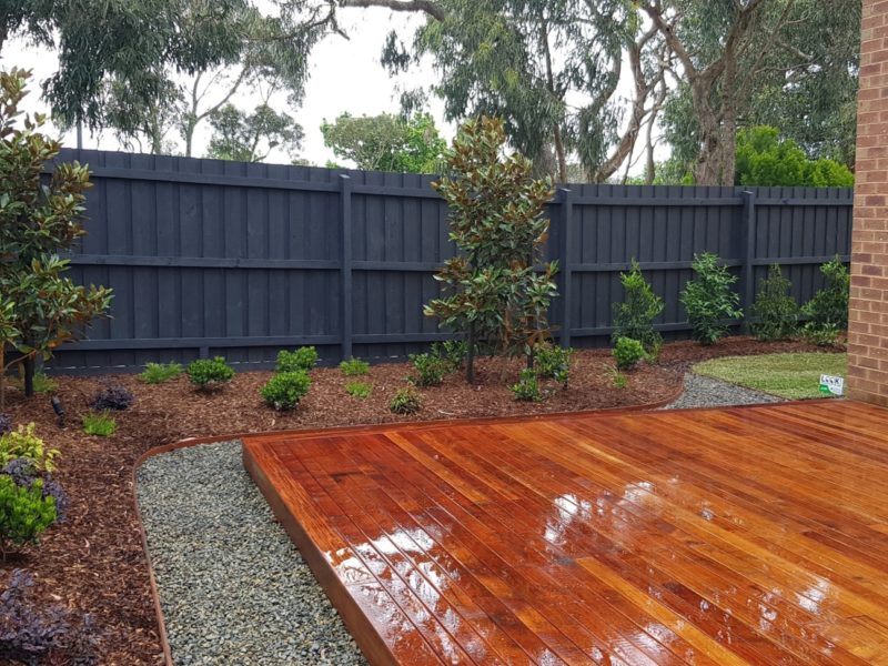 Landscaping in Ferntree Gully featuring Merbau timber deck
