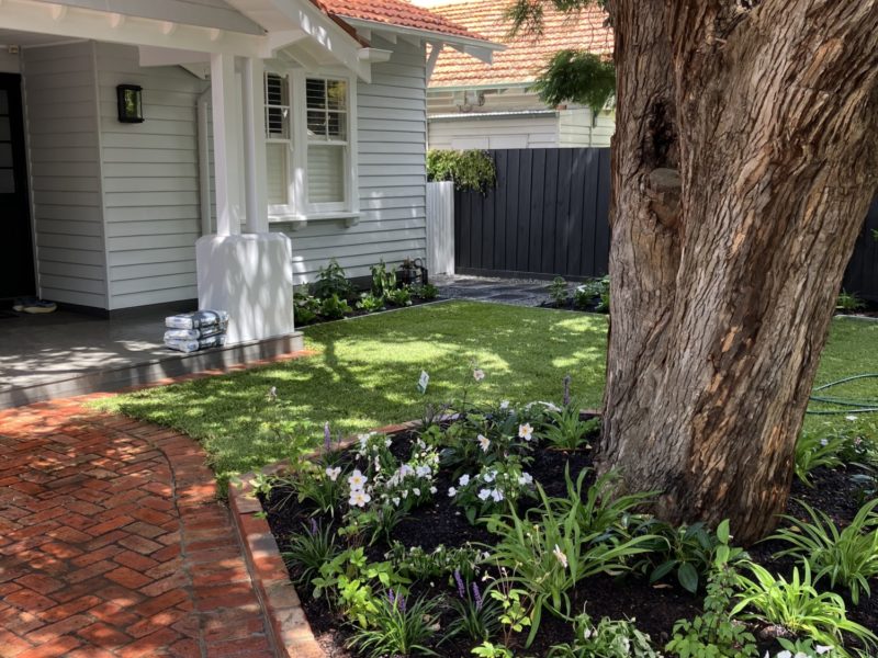 A lovely garden refresh for this Hampton home with plants from Bay Road Nursery and Café. This fresh green lawn with the shade of the established trees is an inviting spot to relax this summer.