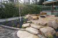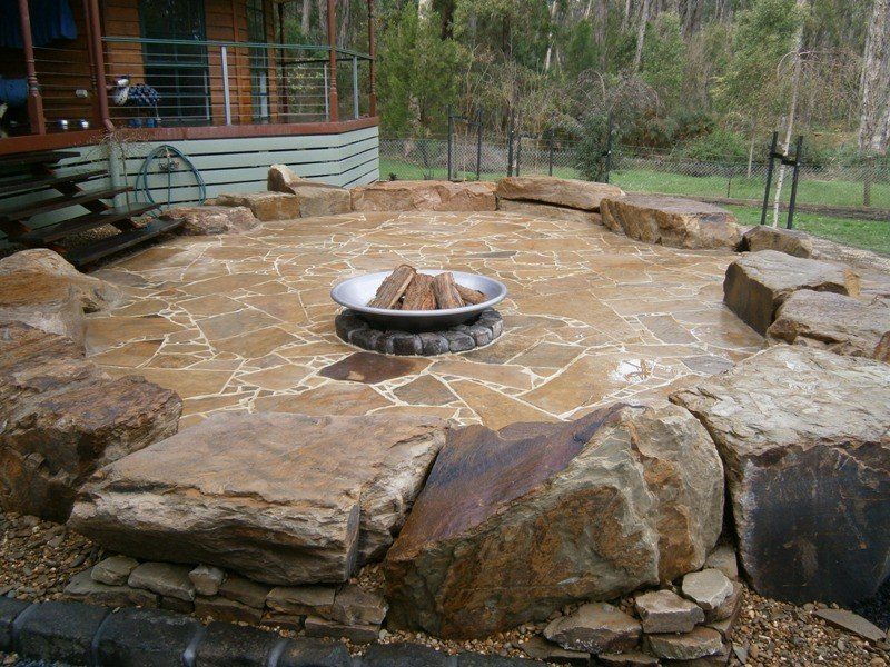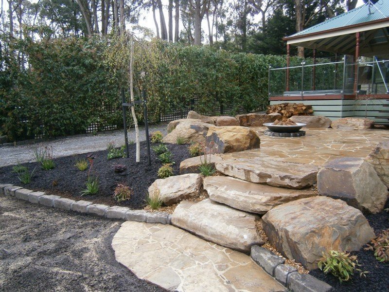 A beautiful bush setting surrounded by the rolling hills of Lilydale, the perfect place to relax and unwind. Features Castlemaine crazy paving, Castlemaine rock and steel fire pit.