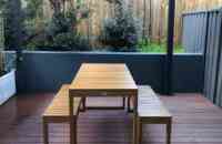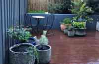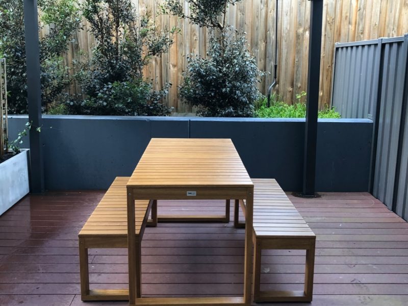 Courtyard makeover in Ringwood including pots, plants and garden furniture.