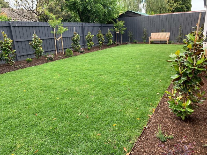 These clients are now the proud owners of their own little escape with this simple yet effective garden and lawn installation to accompany their newly built home in Vermont South. Although you can't see it, good soil remediation and prep after a garden has been a construction site is crucial for its future success. Knowing we have diligently done our best to achieve this gives our team, the new garden owners and most importantly all those plants peace of mind that they will remain healthy for years to come.